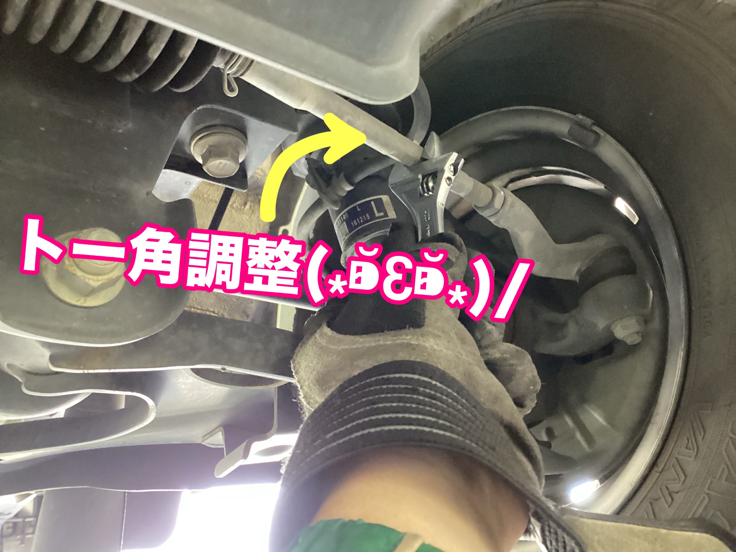 こちらのお車の場合「前輪トー角のみ」調整が可能なお車ですのでクルクルっと♬