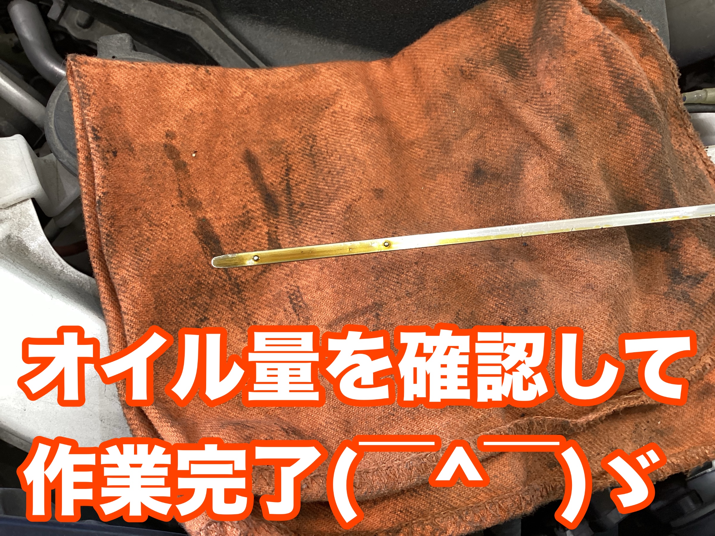 「エンジンオイルを入れて、レベルゲージにて規定量入っているか確認」バッチリ(゚Д゚)ノ