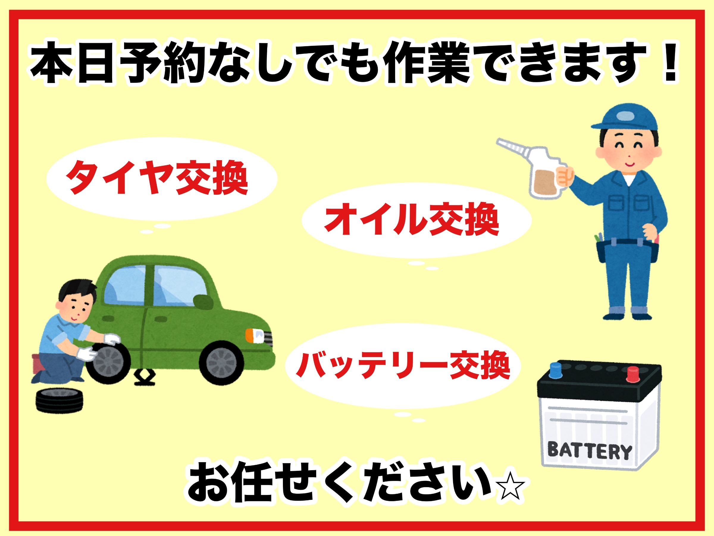 タイヤ点検・安全点検/タイヤ履き替え/オイル交換/その他ピット作業の予約