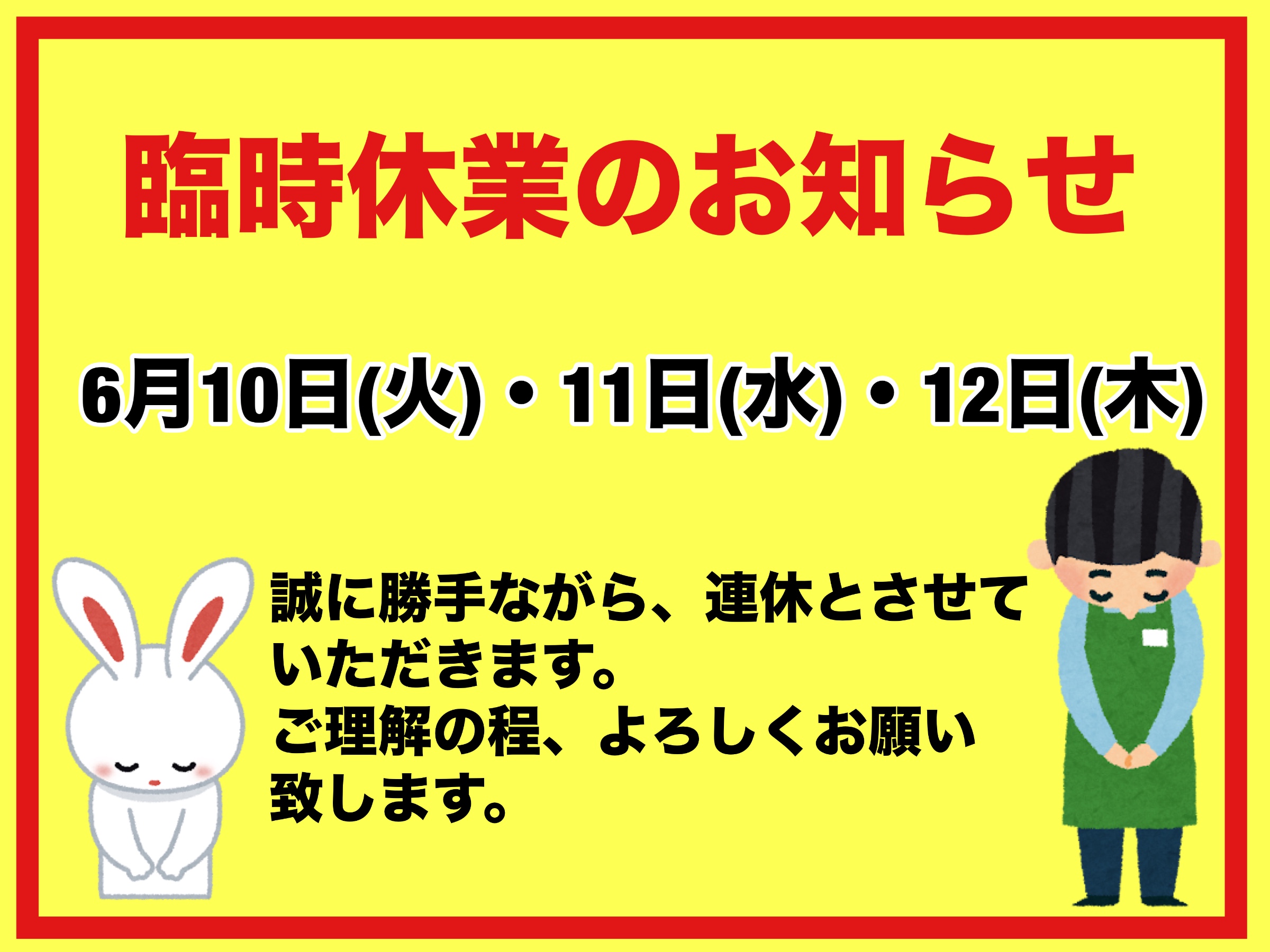 臨時休業のお知らせ⊂((・x・))⊃ ポスト 2025年6月3日 タイヤ館本庄店のWEBをご覧の皆さまこんにちは♫ タイヤ館 本庄 住所:367-0027埼玉県本庄市五十子一丁目2番2号 電話番号: 0495-24-6771 相談予約 カテゴリ:お知らせ