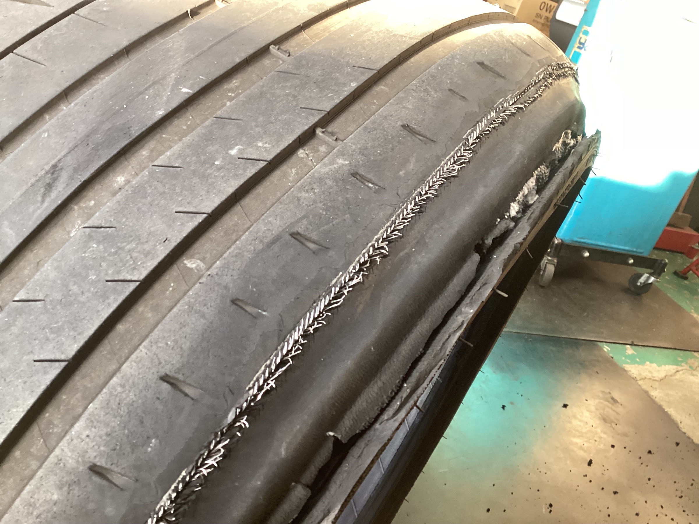 タイヤが「パックリ切れてしまっている状態(;゚Д゚)‼」 内部までボロボロ・・・(汗;)