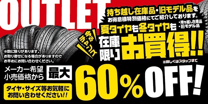 ◇【OUTLET商品】でお得にタイヤ交換しちゃいませんか(=゚ω゚)ノ◇