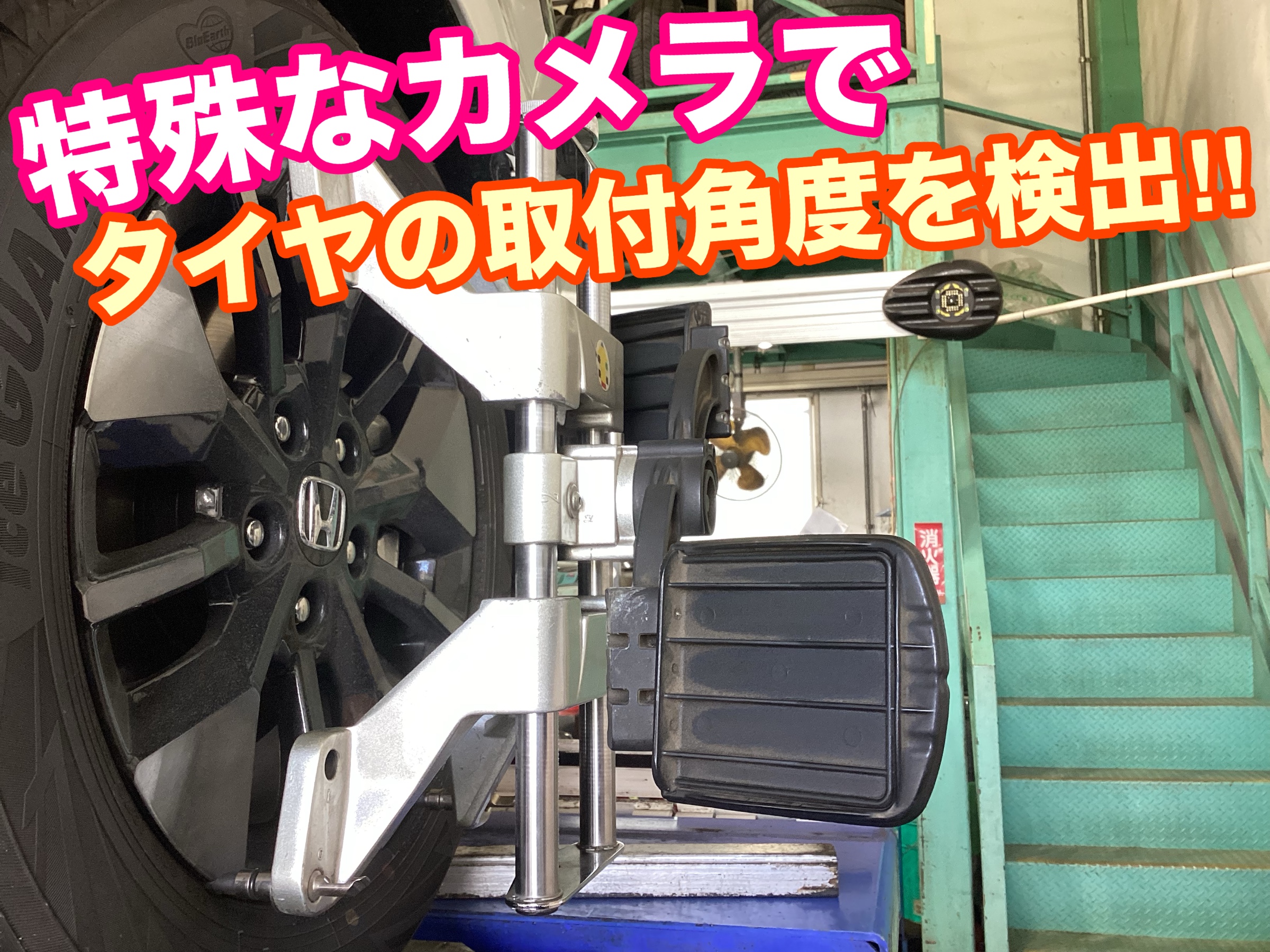 ご来店を頂きまして・・・只今タイヤの取付角度の点検中('◇')ゞ