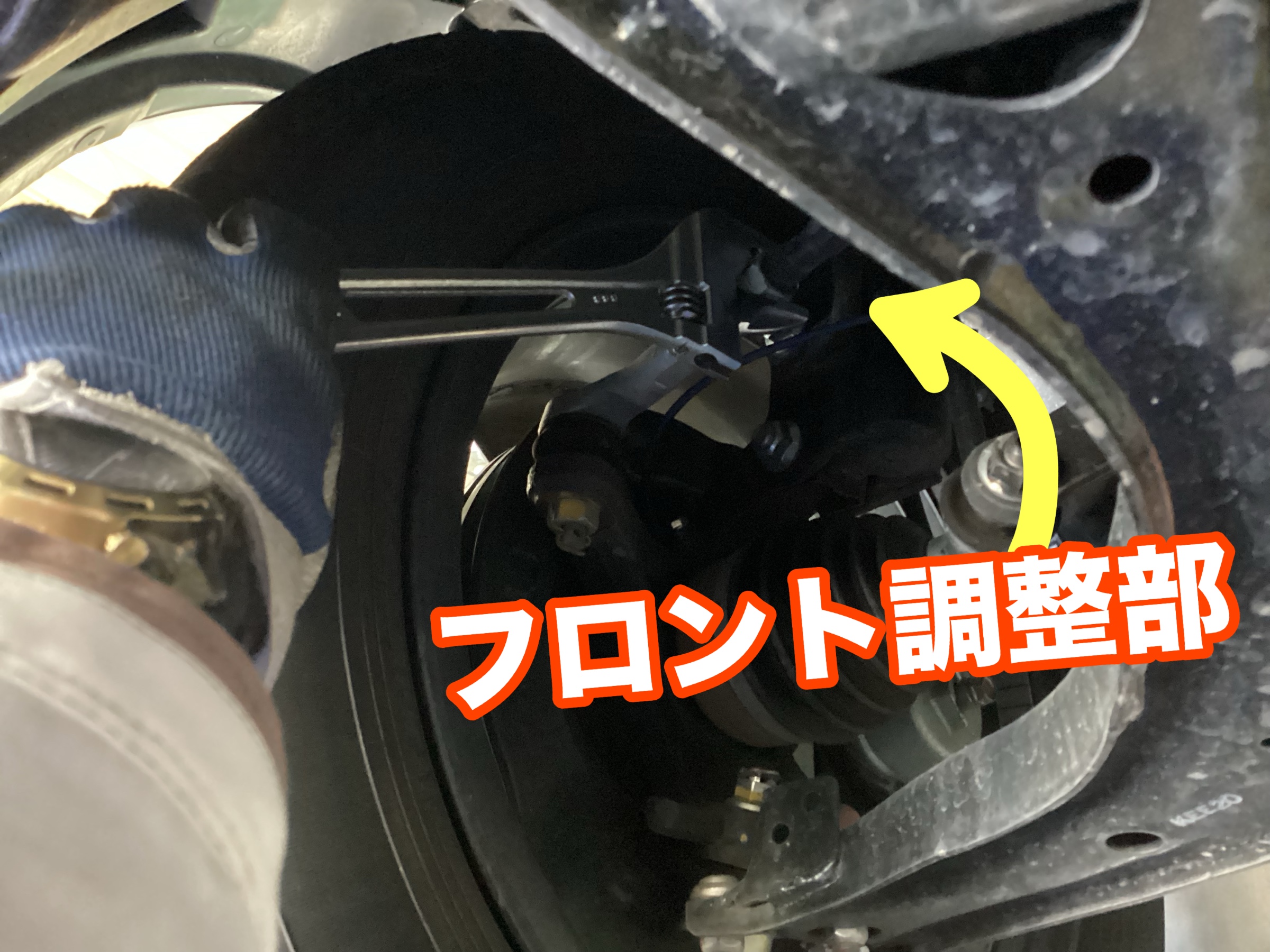 調整機構はついておりませんが「キャンバー角/キャスター角」に大きなズレなし♬