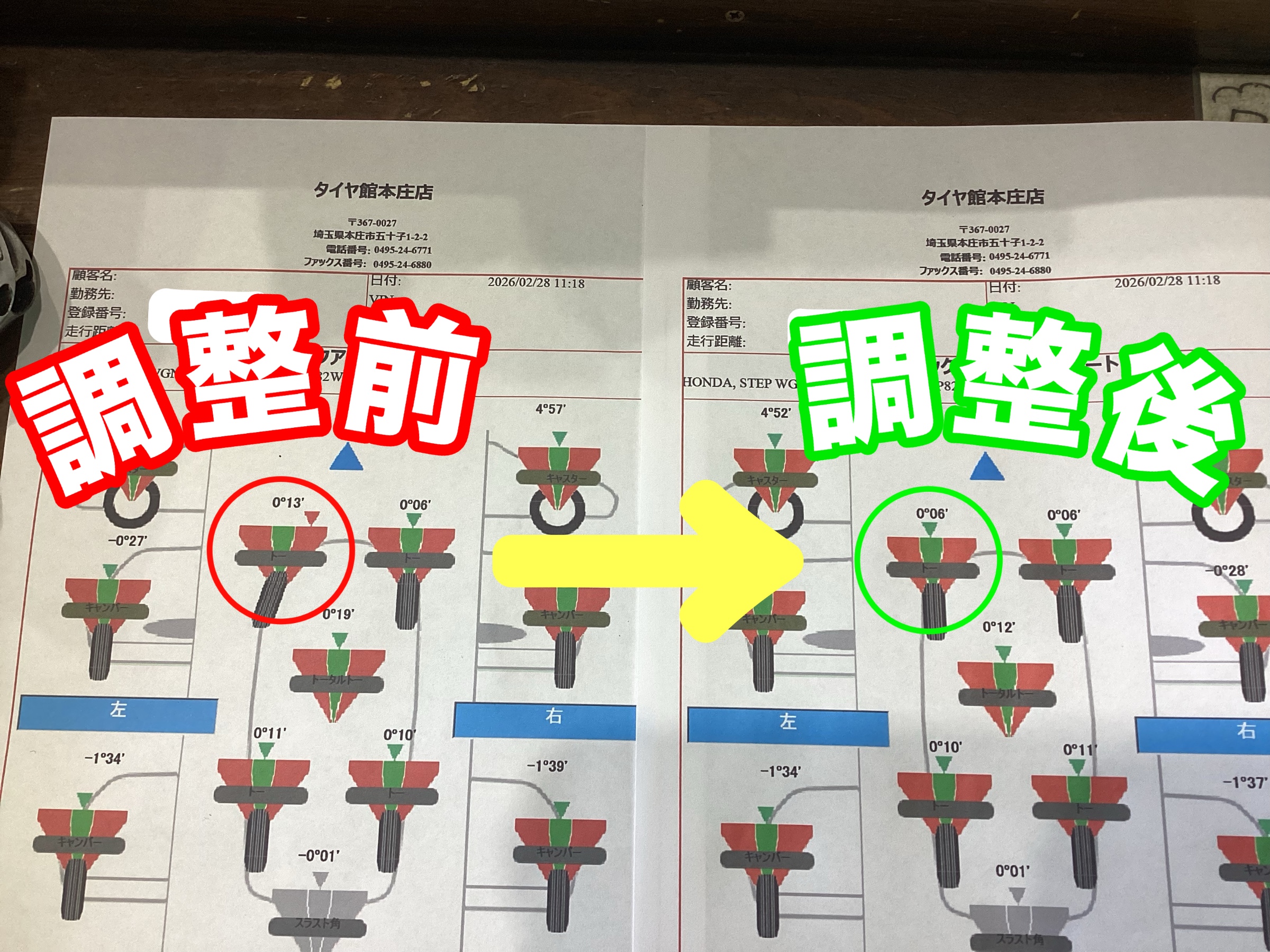 測定データの確認をしてみると・・・【左前のみトー角のズレ】が発生(゚Д゚)ノ