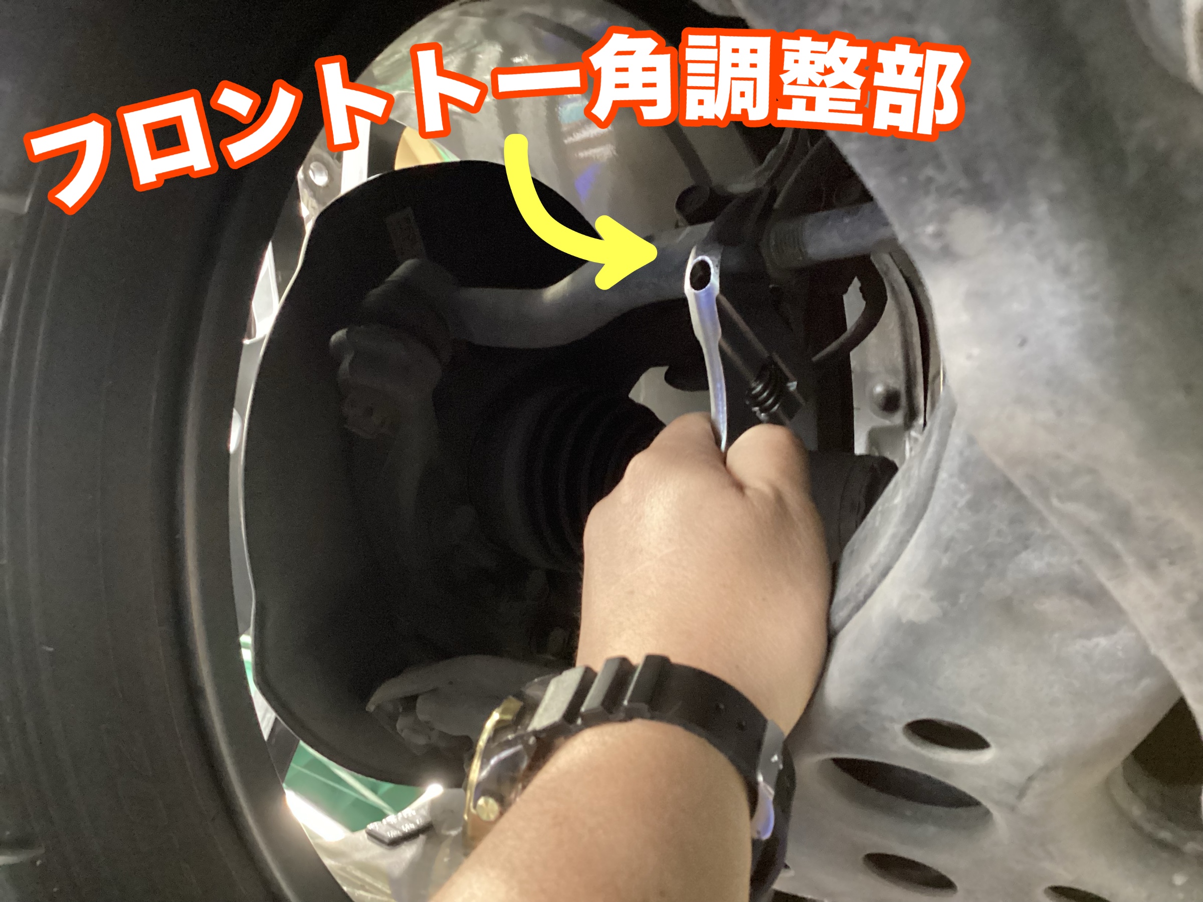 「前輪トー角が開いている状態+左側の開き方が大きい(゚Д゚;)‼‼」