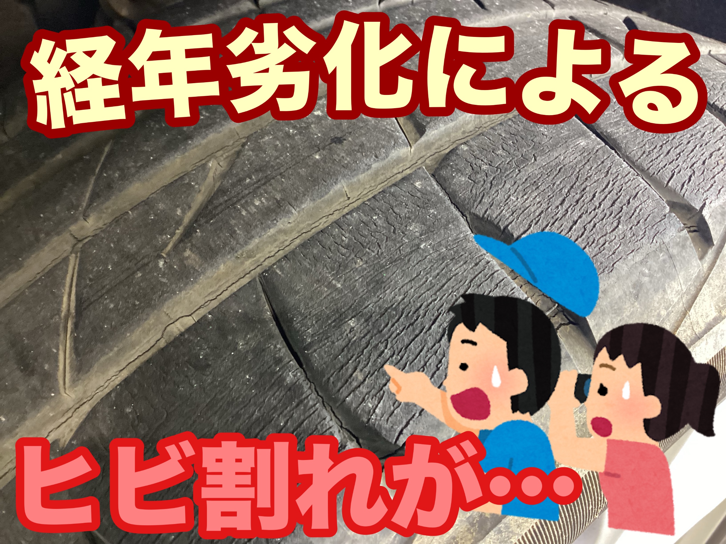 早速お客様とご一緒にタイヤの状態を・・・凄いヒビ割れが(゚Д゚;)‼‼‼‼