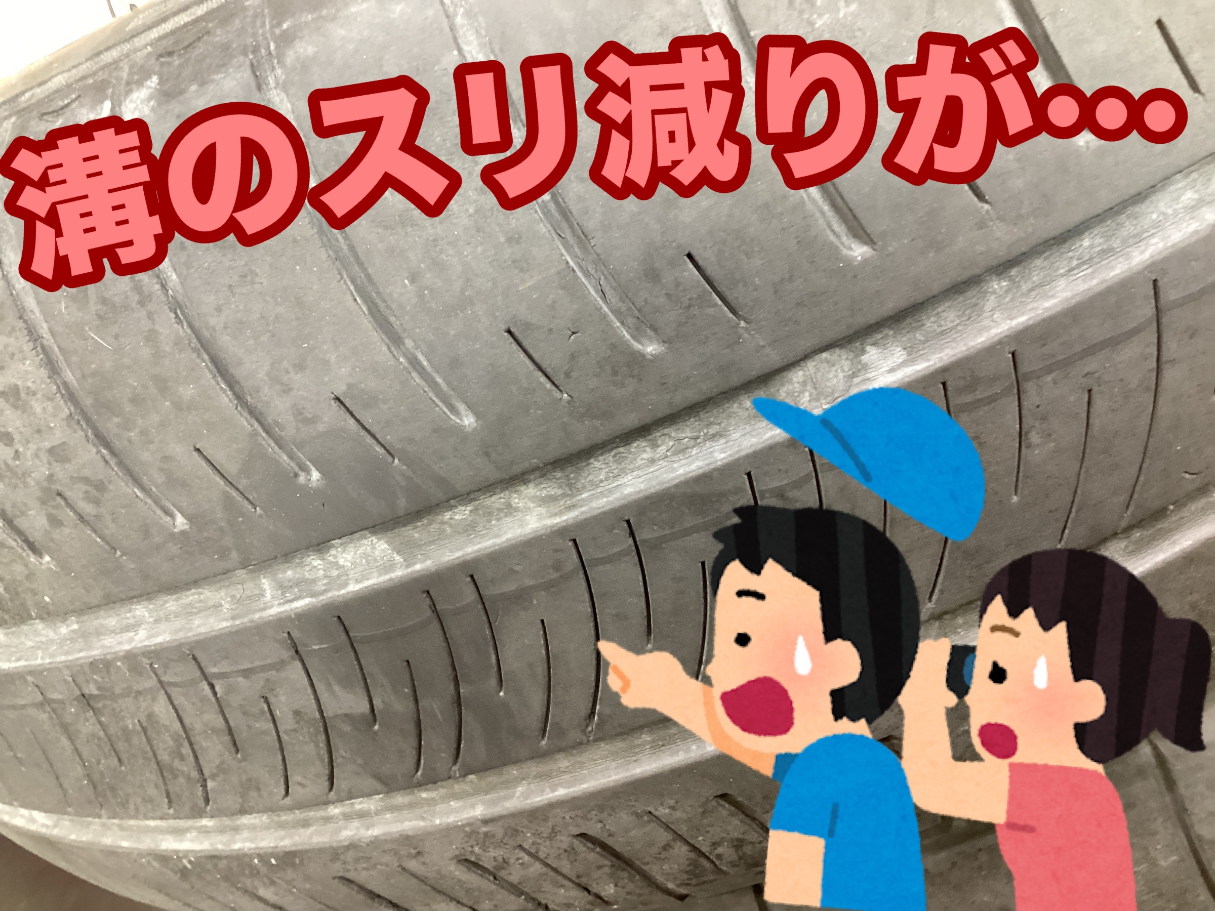 先日【空気圧の点検】にご来店を頂いた際に「タイヤの両角が擦り減っている状態」が