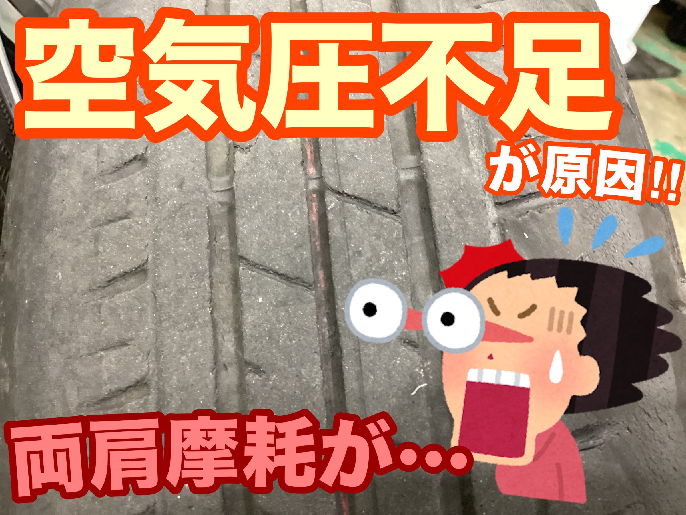 「タイヤの両角が擦り減っている(;゚Д゚)(;゚Д゚)(;゚Д゚)(;゚Д゚)‼」