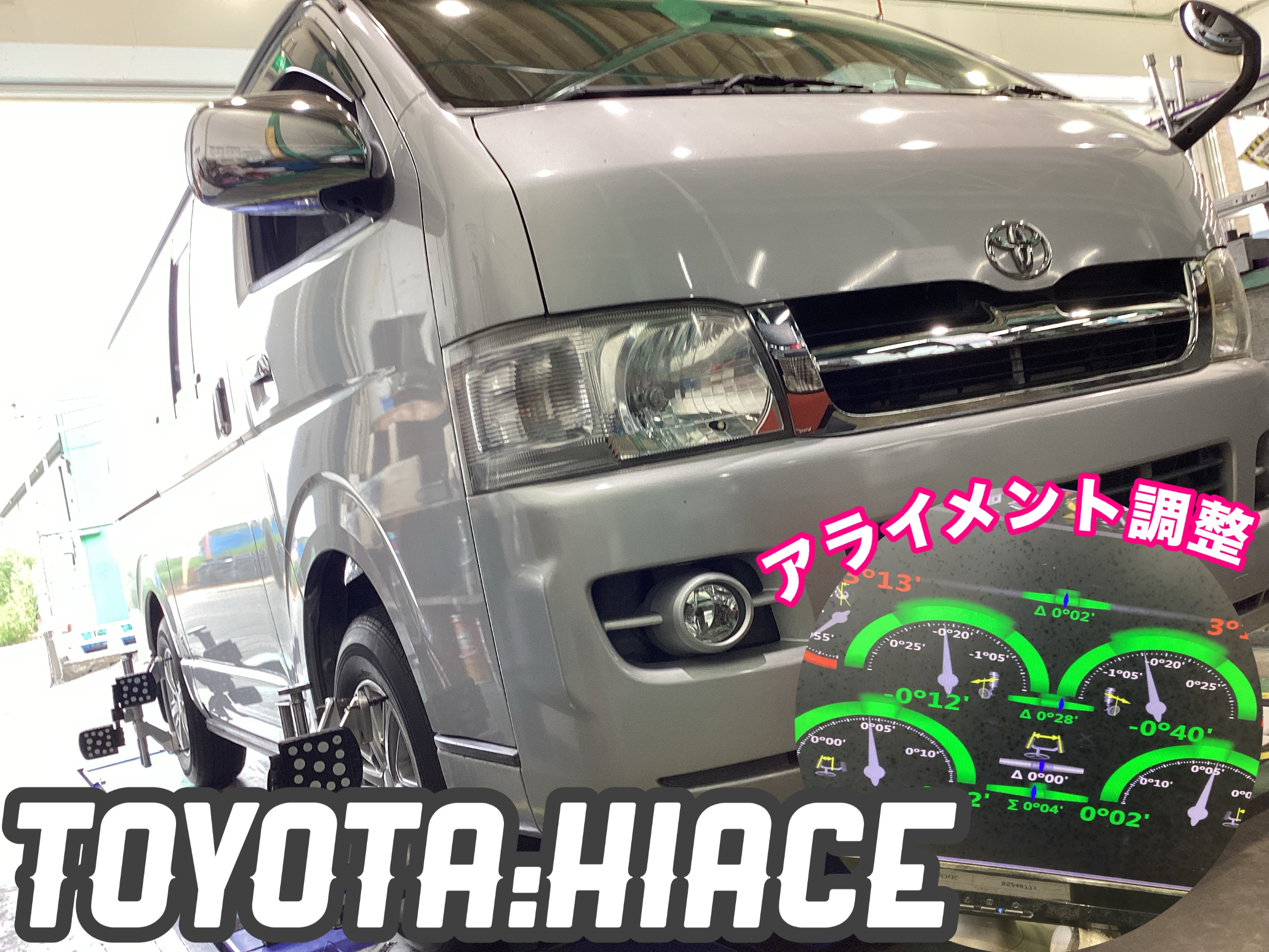 本日のご予約作業は【TOYOTA:ハイエースの「アライメント調整作業(=゚ω゚)ノ」】