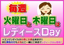 本日、レディースデイ♪ですよ。 ポスト 2017年10月17日 本日、10月17日火曜日はレディースデイ!!これから、秋の行楽シーズン到来ですよ。お出かけ前に、お車の点検をしておきませんか? 女性のお客様はエンジンオイルがお安くなります!! そして、無料安全点検も実施中!!! 普段、お車のメンテナンスをされていない女性の方がいらっしゃいましたら、お気軽に ご来店ください。お待ちしております。