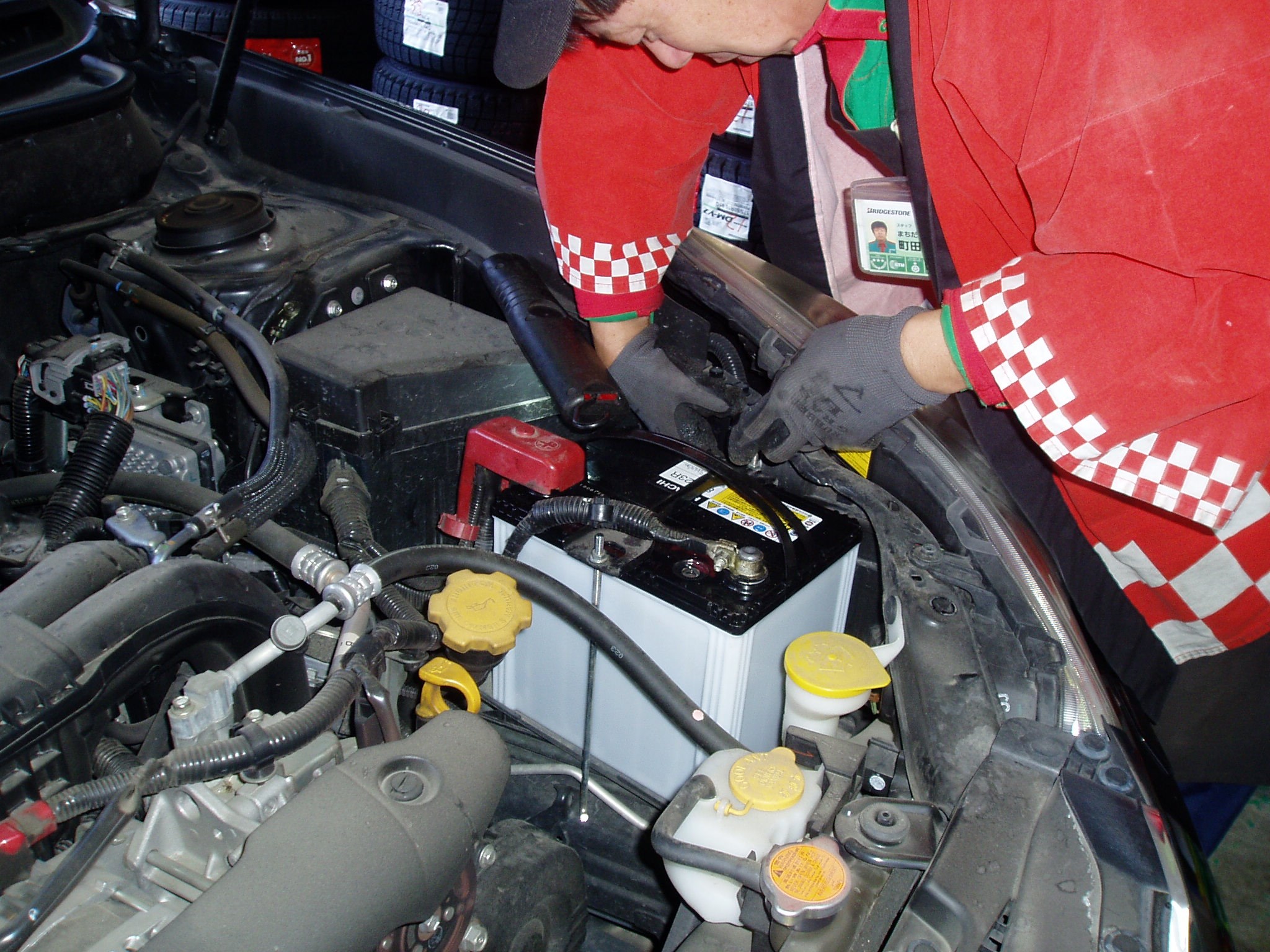 バッテリー交換です。 ポスト 2017年11月4日 だいぶ寒くなってきてバッテリー交換のご用命が多くなって来ました。 寒くなるとエンジンの始動性が悪くなってきます。 バッテリーの電圧が大きく関与してきます。 ぜひ冬本番前に点検しておきたいとことですね。
