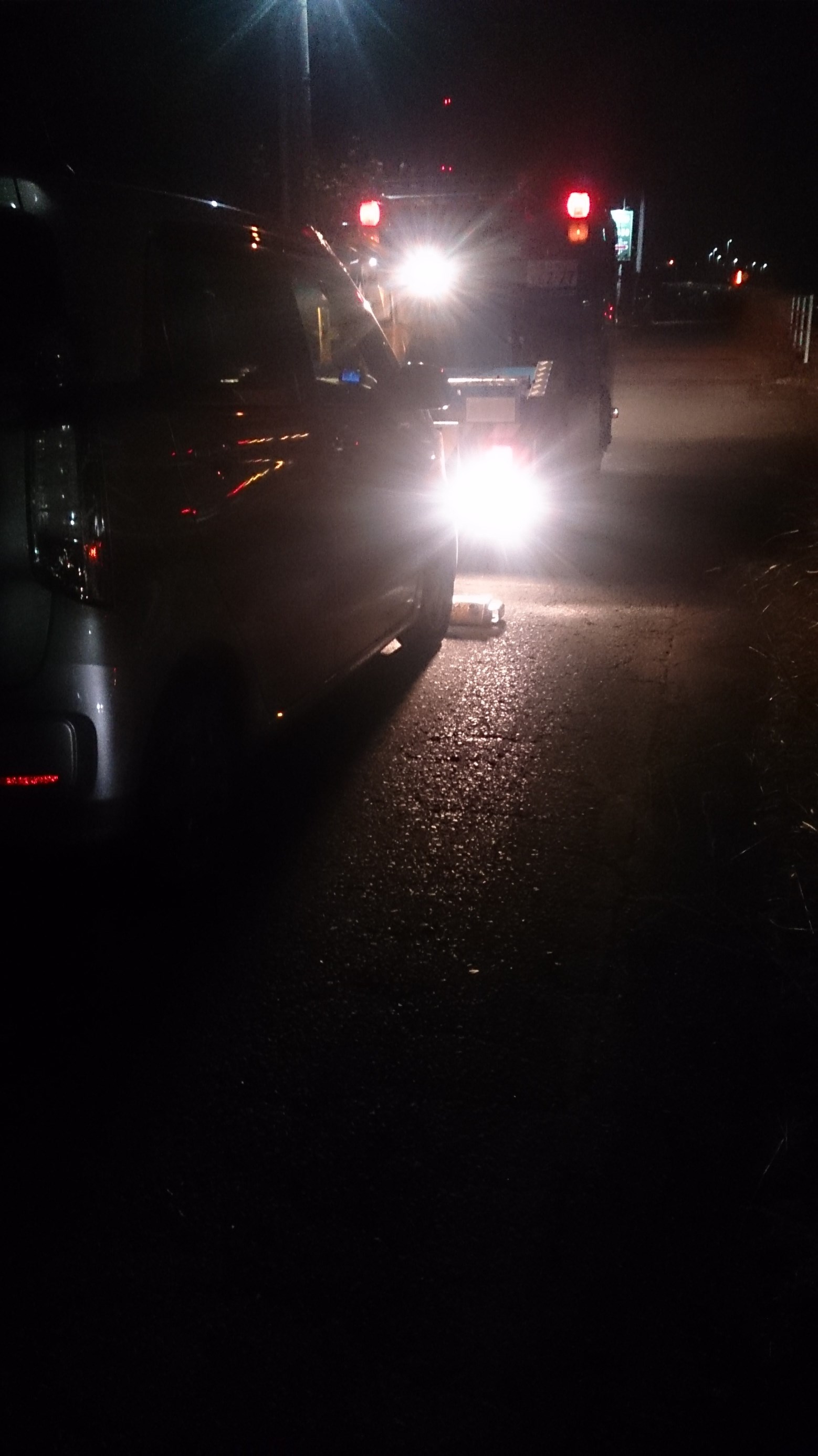 悲劇でした・・・ ポスト 2017年12月2日 つい先日仕事から帰っている途中・・・ 「ぱしゅ~」という聞きなれない音と同時に社内のエアセンサーの表示が緑から赤へ・・・ そう、不意をつくパンク襲来です。 安全な場所に車両を停めて確認。 見事につぶれていました。 少し考えましたが、素直にJAFにお世話になることにしました。 無理に走行して二次災害はごめんです。 あいにくの帰宅でした。