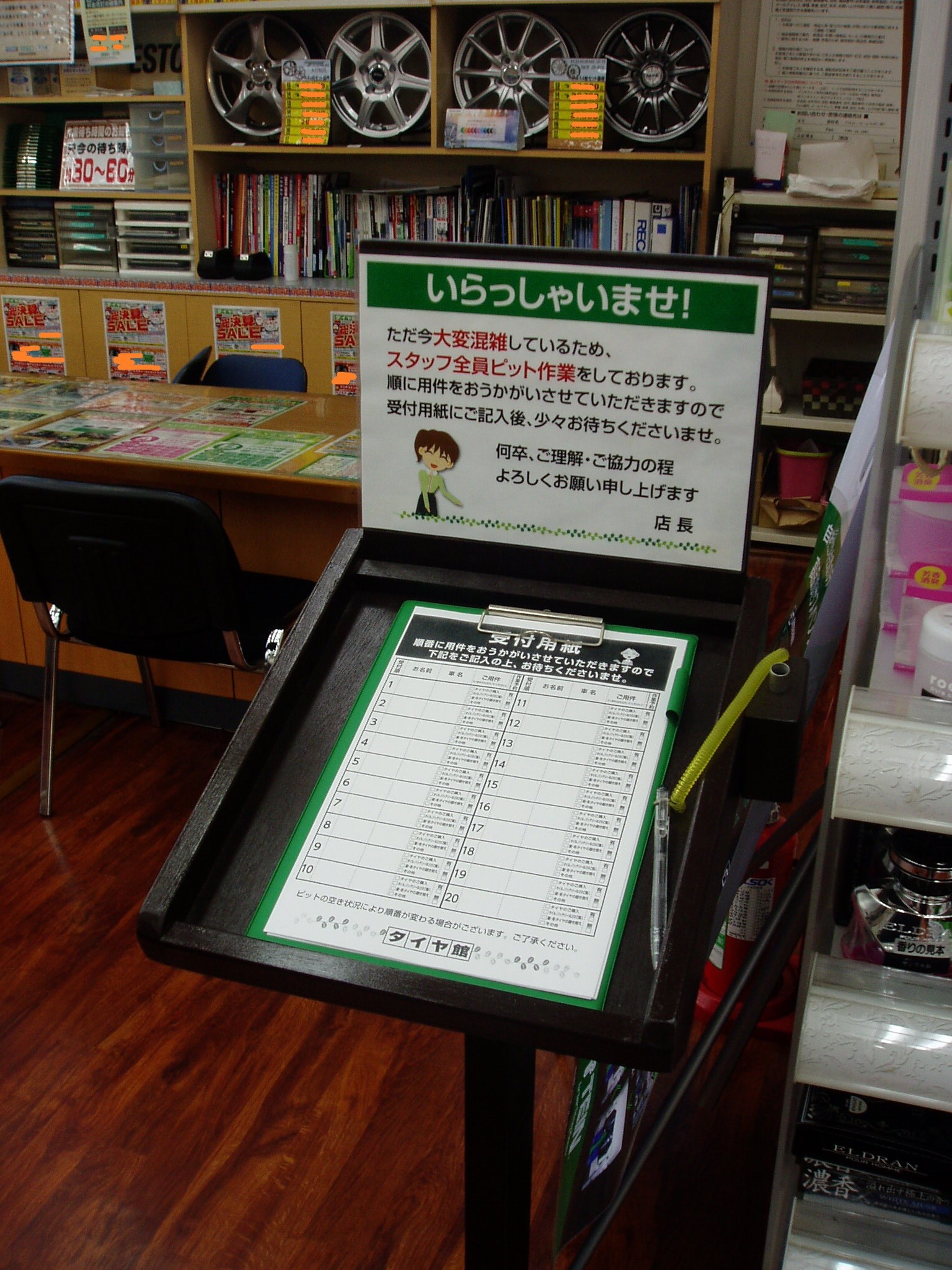 混み合っているときの順番待ちの案内です。 ポスト 2017年12月12日 どうしてもこの時期はご来店が集中してしまい、受付に時間がかかってしまいます。 そんな中でもご来店順に受付が出来るように、当店でも順番の記入ボードを用意しています。 混んでいる場合は記入の程、よろしくお願いします!!
