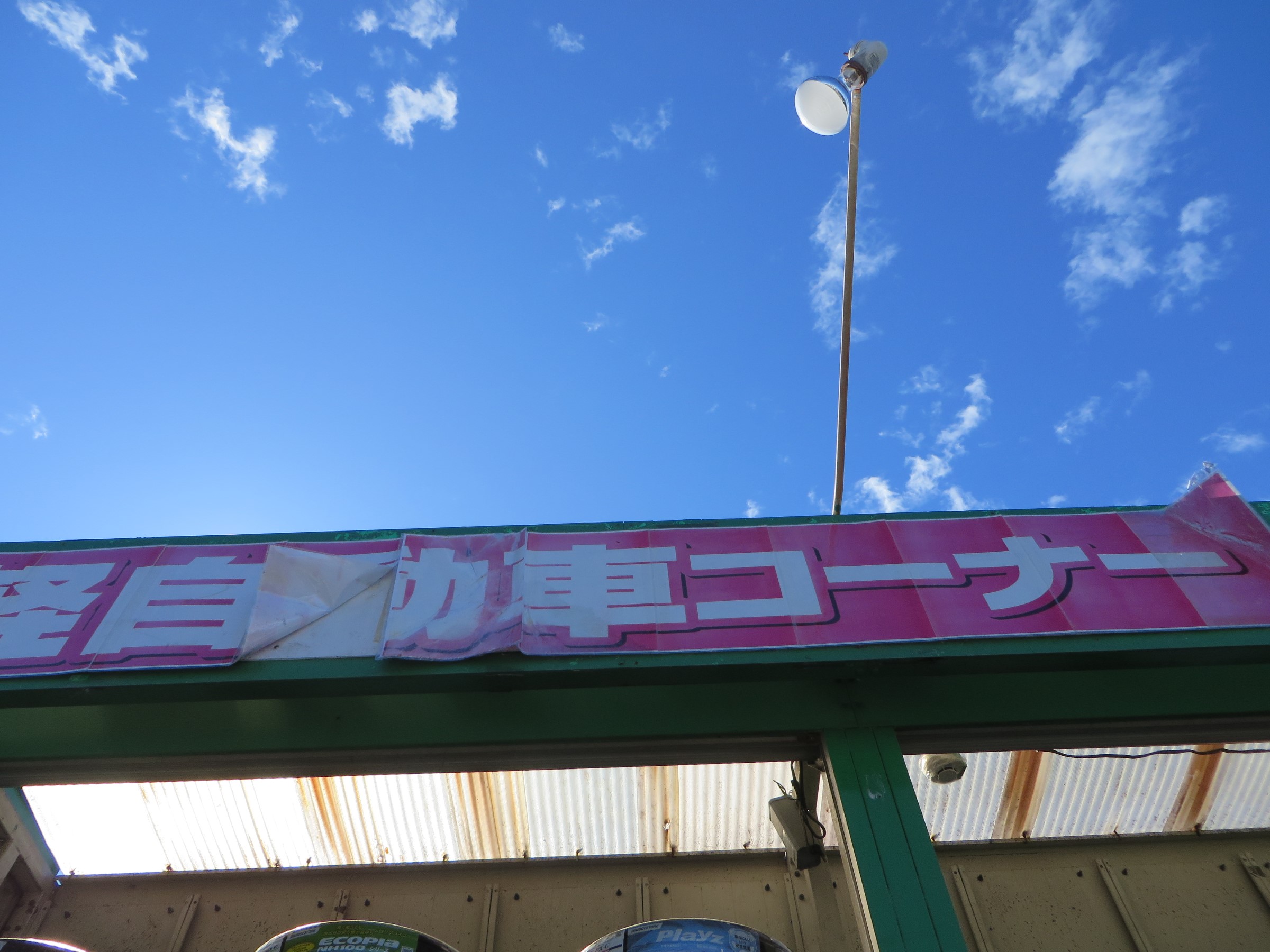 風の強さにより一部POPが剥がれたりガレージの屋根がめくれてる箇所が