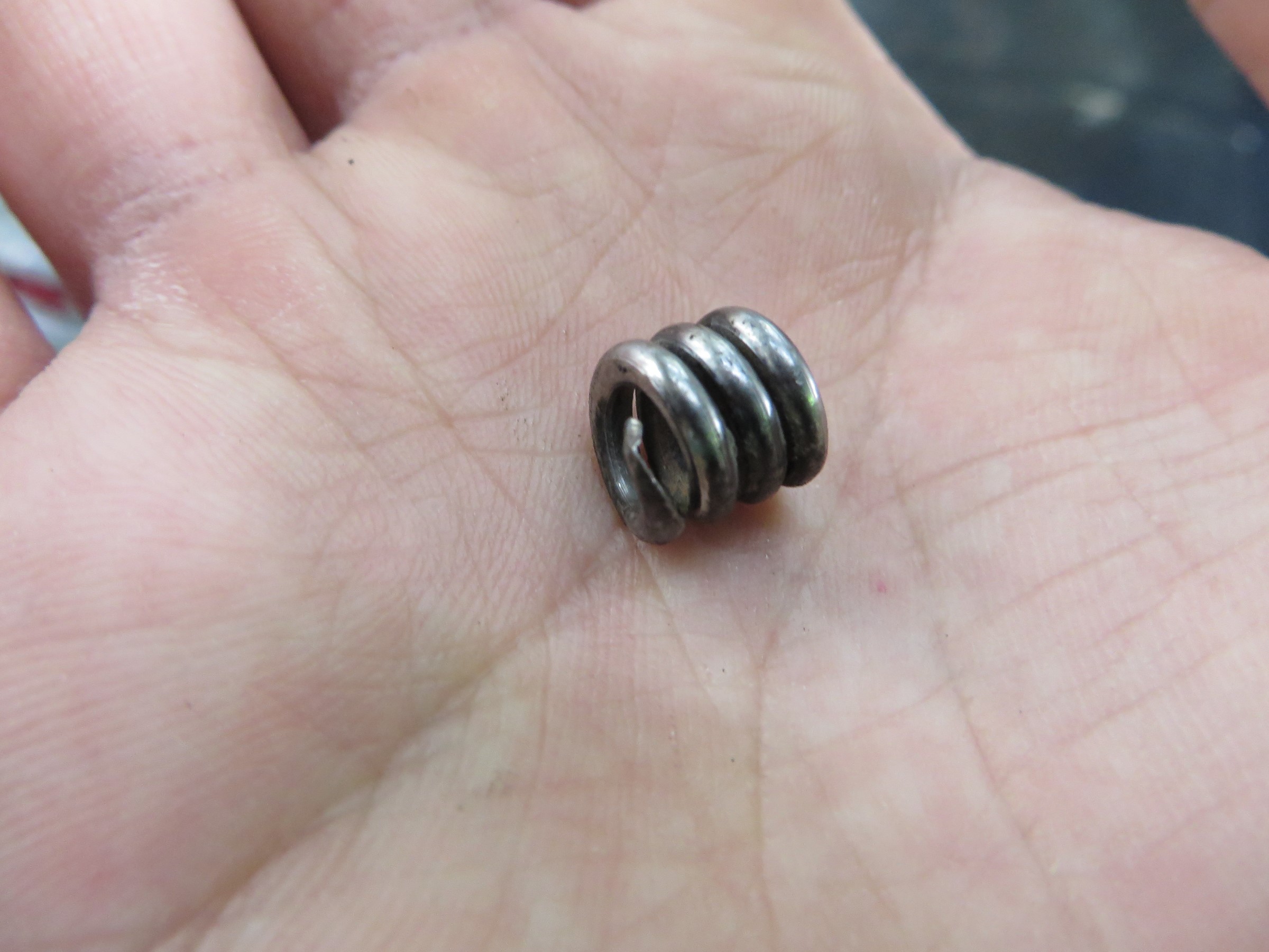 タイヤの点検をしていた所、すぐに下の画像のバネのような物が溝にあるのが確認できました。
