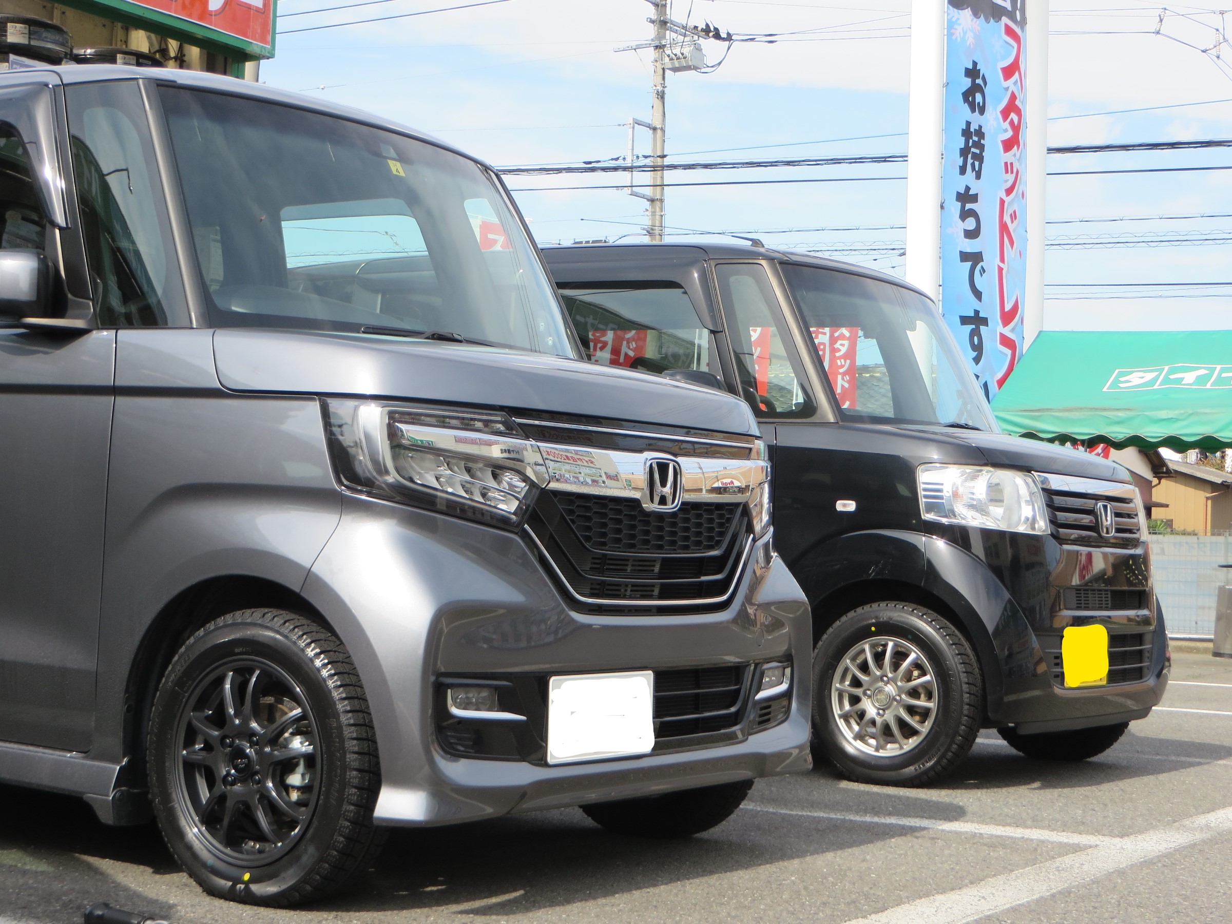 取り付けしたタイヤ:左【アイスパートナー2 155/65R14】、右【アイスパートナー2 145/80R13】