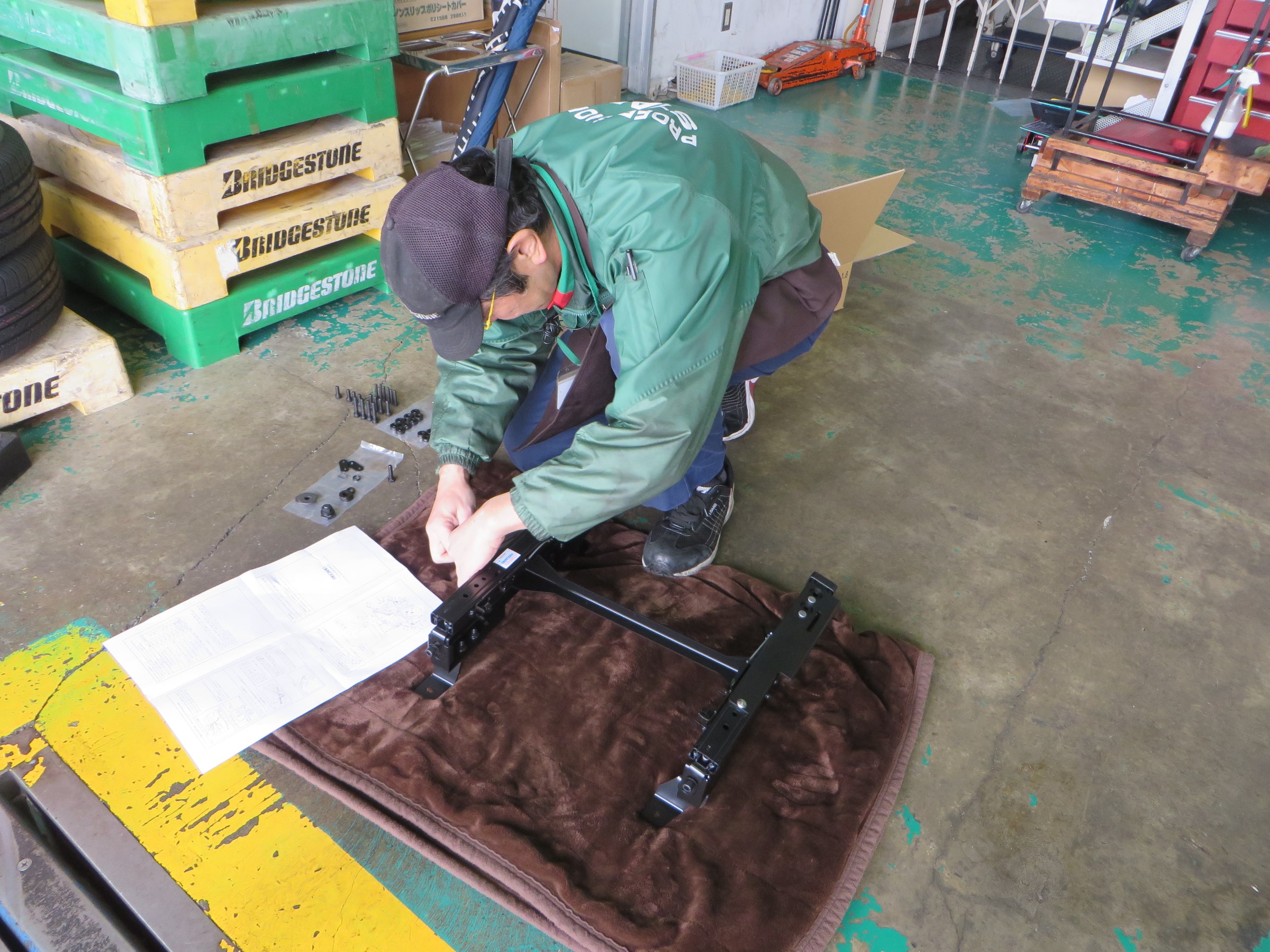 純正シートの取り外し、レカロシートの取り付けも思いのほかスムーズに進んでいき、