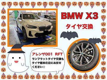 皆さまこんにちは・こんばんは☆ いつもタイヤ館本庄店のWEBをご覧いただきありがとうございます。 今回は『BMW X3』のタイヤ交換をさせていただきました! 交換したタイヤは『アレンザ001 RFT』になります。 こちらのランフラットタイヤは空気圧がゼロになっても所定の距離が 走行可能なタイヤにな...