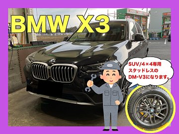 皆さまこんにちは☀︎ いつもタイヤ館本庄店のWEBをご覧いただきありがとうございます。 今回は『BMW X3』に『ブリザックDMーV3』の取付作業をさせていただきました! 「ブリザック」ブランドの特長である氷上性能だけでなく 長期間使用できるよう摩耗ライフにも配慮した スタッドレスタイヤになります...