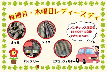 タイヤ館では、毎週火曜日、木曜日、それと毎月1日から7日までは レディースデイとしてオイル交換等をお買い得にて提供中です。 必ず実施する重要な愛車のメンテナンスです。 一度試してみませんか? タグ:オイル交換 レディースデイ 本庄市