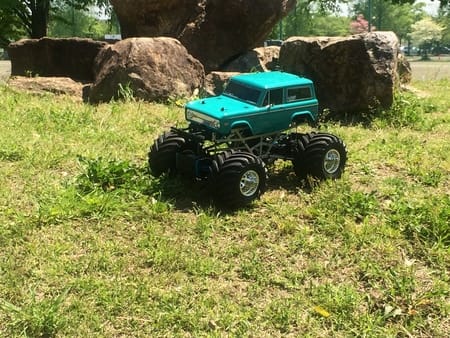 田宮のサーキットで去年レストアしたTXT-1というモンスタートラック(タイヤが大きい四輪駆動車のラジコン)を走らす。とか