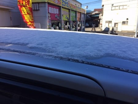 朝、出勤しようと思ったら車にも庭にも雪が積もっていた!!(軽く)(;><)