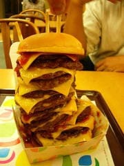 先日ミナウチは関越練馬(以下カンネリ)の店長とともに、以前TVで紹介されていたらしいロッテリアの追加オーダーを最大限活用しハンバーガーパティ20枚重ねに挑戦してきました!!!!