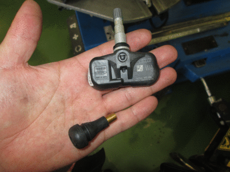 ホイールに付けるのは通常のゴムバルブではなくセンサー付の物に変更します。