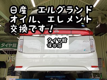 皆さんこんにちは〜( ◠‿◠ ) タイヤ館 保谷店です。 本日の作業は…。 日産 エルグランド オイルとエレメント交換です。 本日はお忙しい中ご来店頂きありがとうございましたm(_ _)m 皆様、お車のメンテナンスはお済みですか? 本日は、比較的作業に余裕があります(^o^) 皆様のご来店、従業員一同お待...