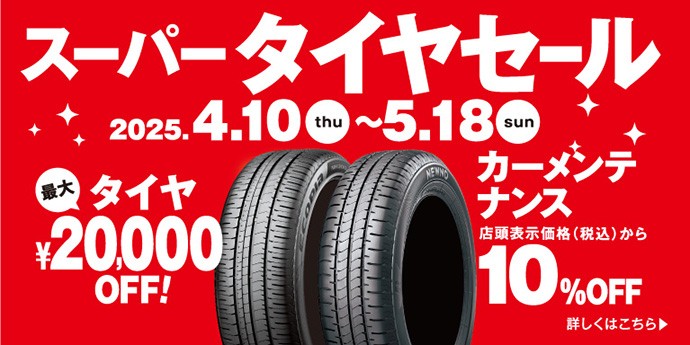スーパータイヤセール 2025年4月10日(木)~5月18日(日)|タイヤ館