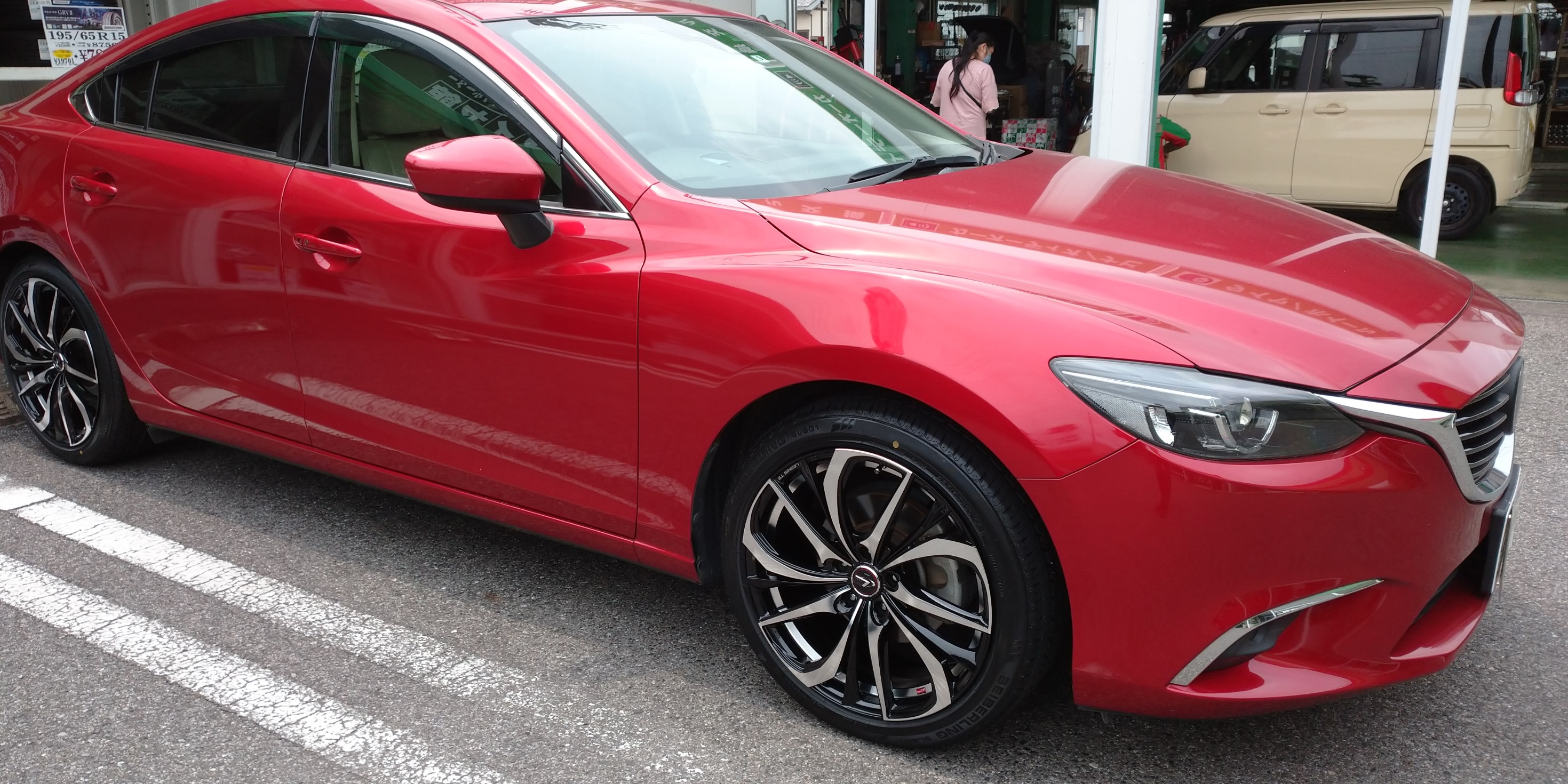 こんにちは、今日はマツダのアテンザにタイヤ&ホイールの取付です
