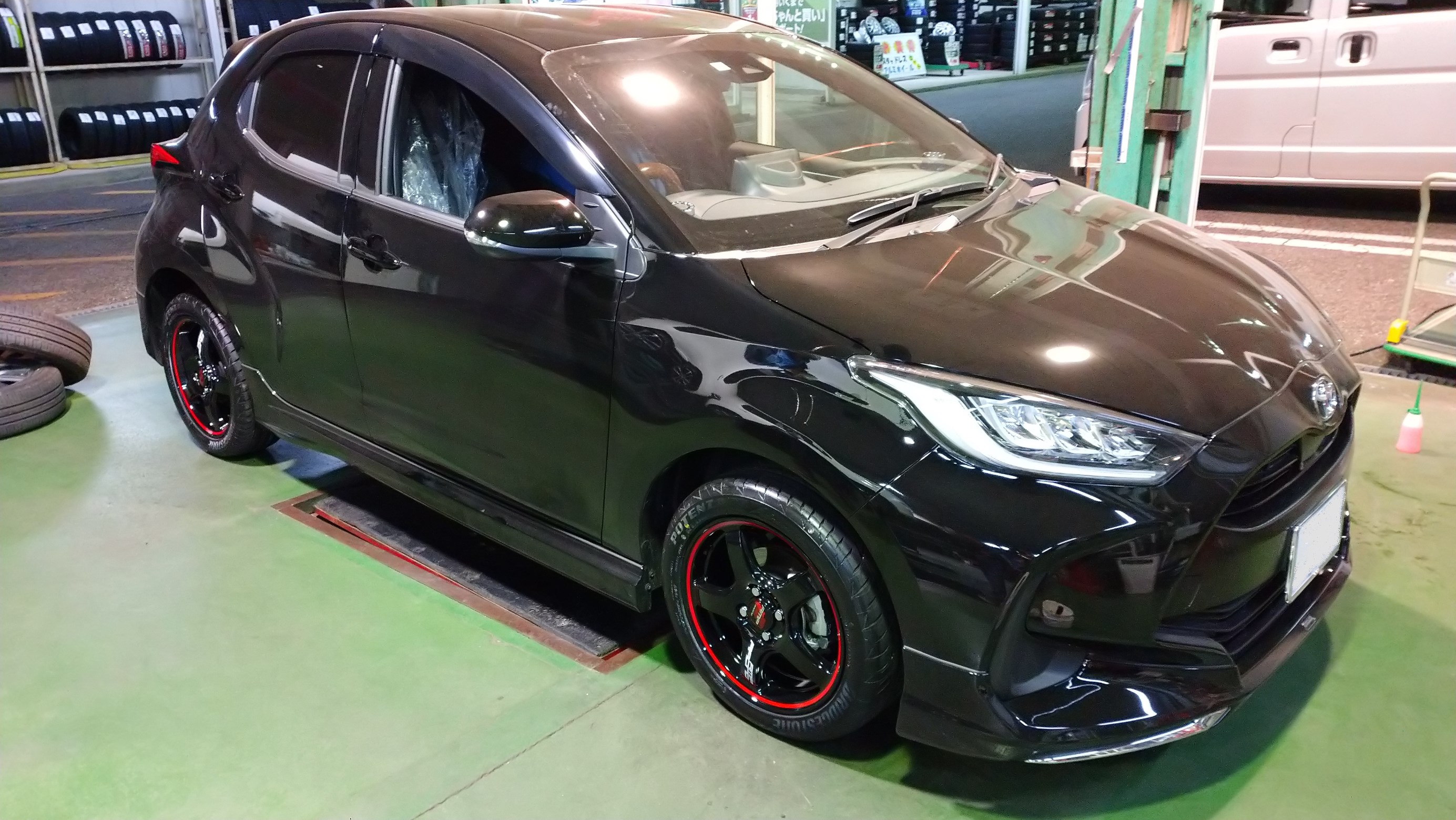 さて、今日はトヨタのヤリスのタイヤ&ホイールの取付です