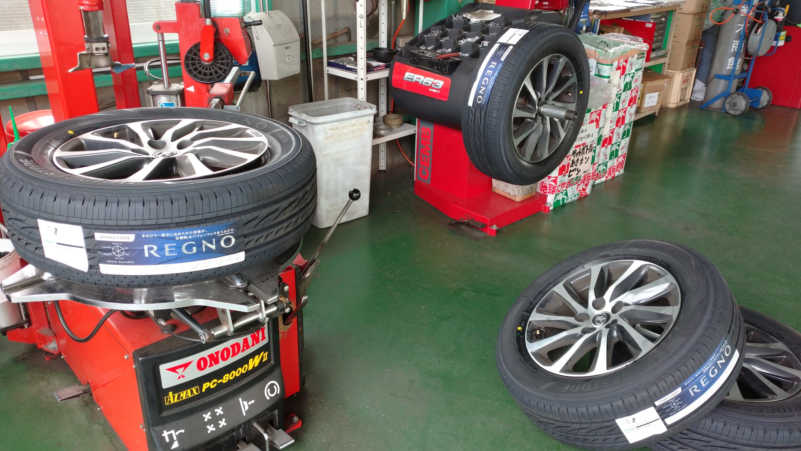 新品タイヤに組み付けます、そして写真奥のホイールバランサーで