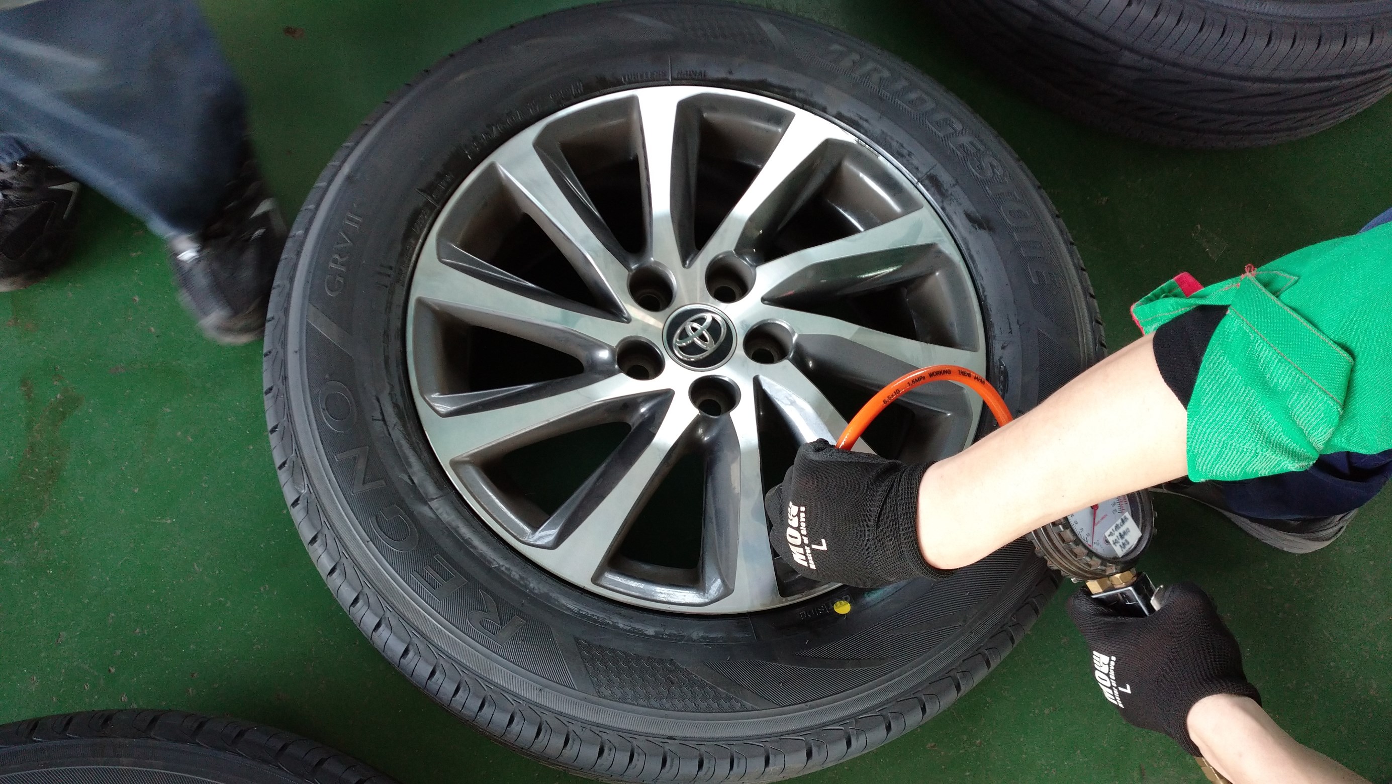 まずは、車両からタイヤを外し、タイヤチェンジャーにて