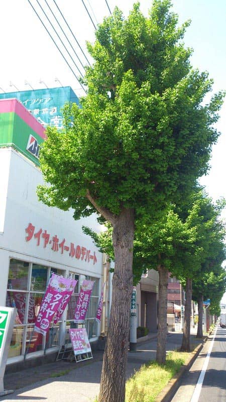 写真は、お店前の市役所道りにズラッと並んだイチョウの木です
