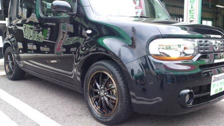 さて今日は、日産のキューブにタイヤ&ホイールの取付です