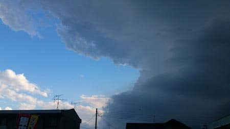 本日も、いい天気だなと思ってたら、辺りがみるみる暗くなり真っ黒な雲が…。