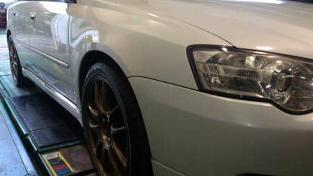 今回の作業は、スバルのレガシィの車高調&タイヤの交換作業です。