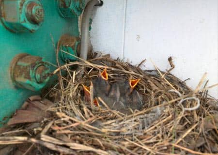 声のする場所にハシゴを使って覗き込むと、そこには鳥の巣が