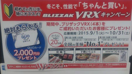プレミアムスタッドレスVRXを御予約で、抽選で全国の美味しい物が