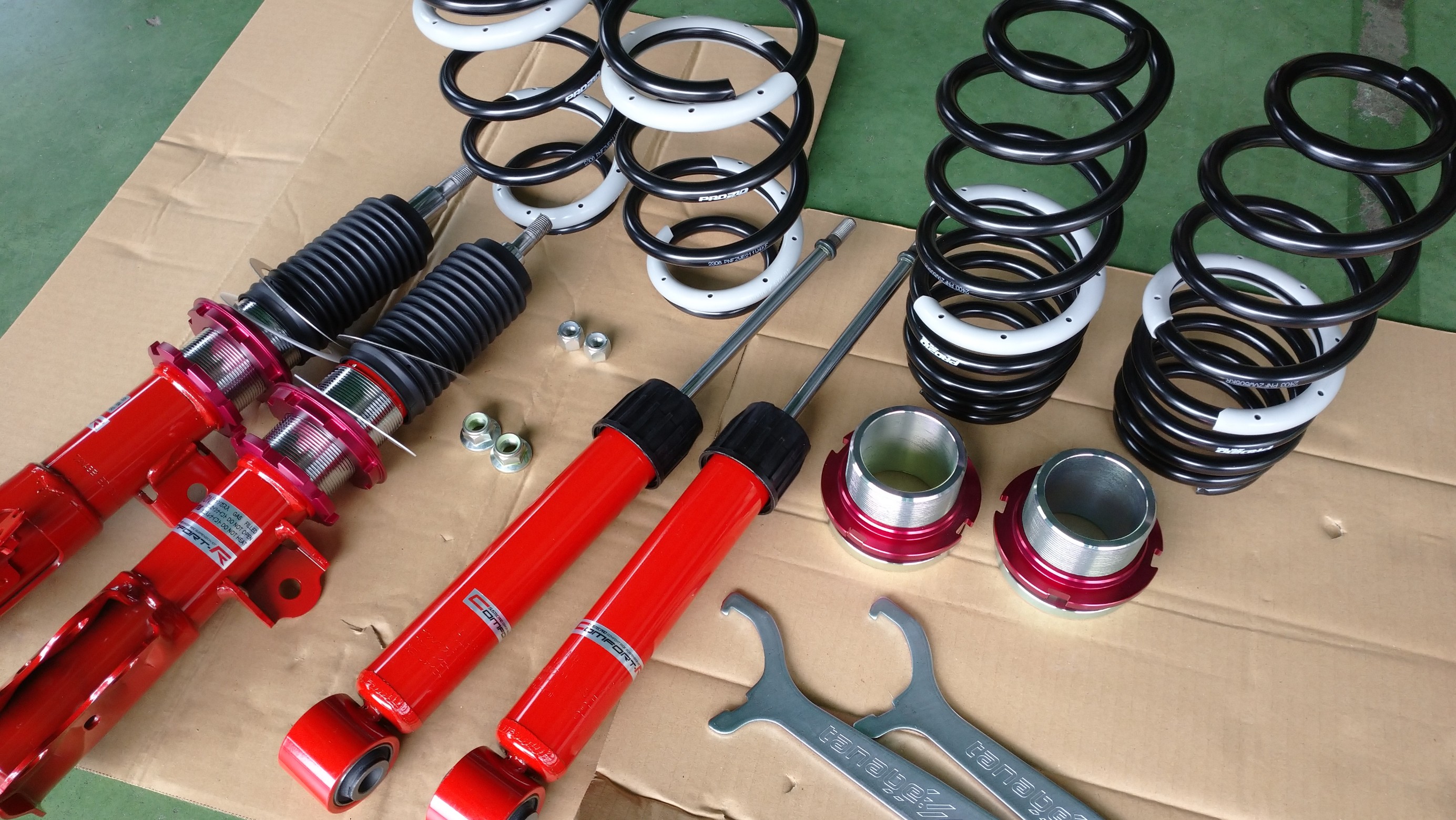さて、今日は朝からトヨタのカローラに車高調の取り付けです