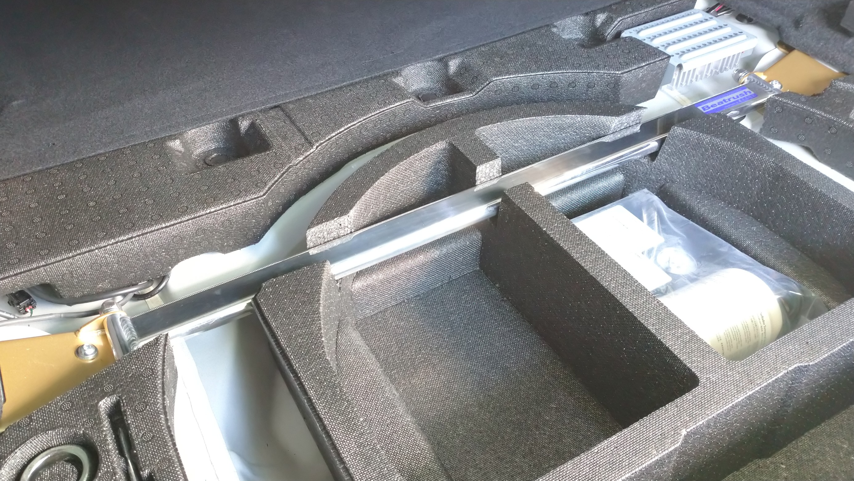 クスコのエンジンルームパワーブレス(タワーバーの下を通ってる青い棒2本)