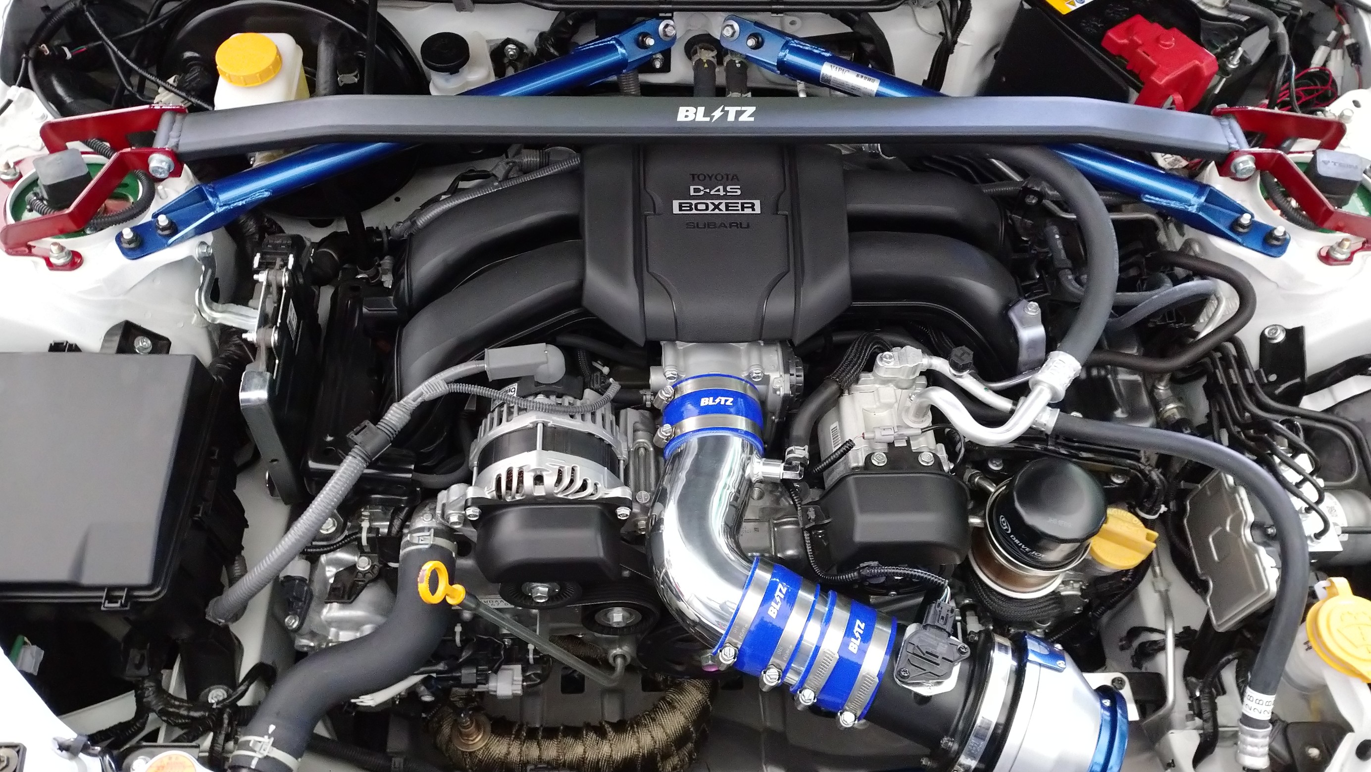 そして、エンジンルームはブリッツのタワーバー(ブリッツって書いてる黒い棒)