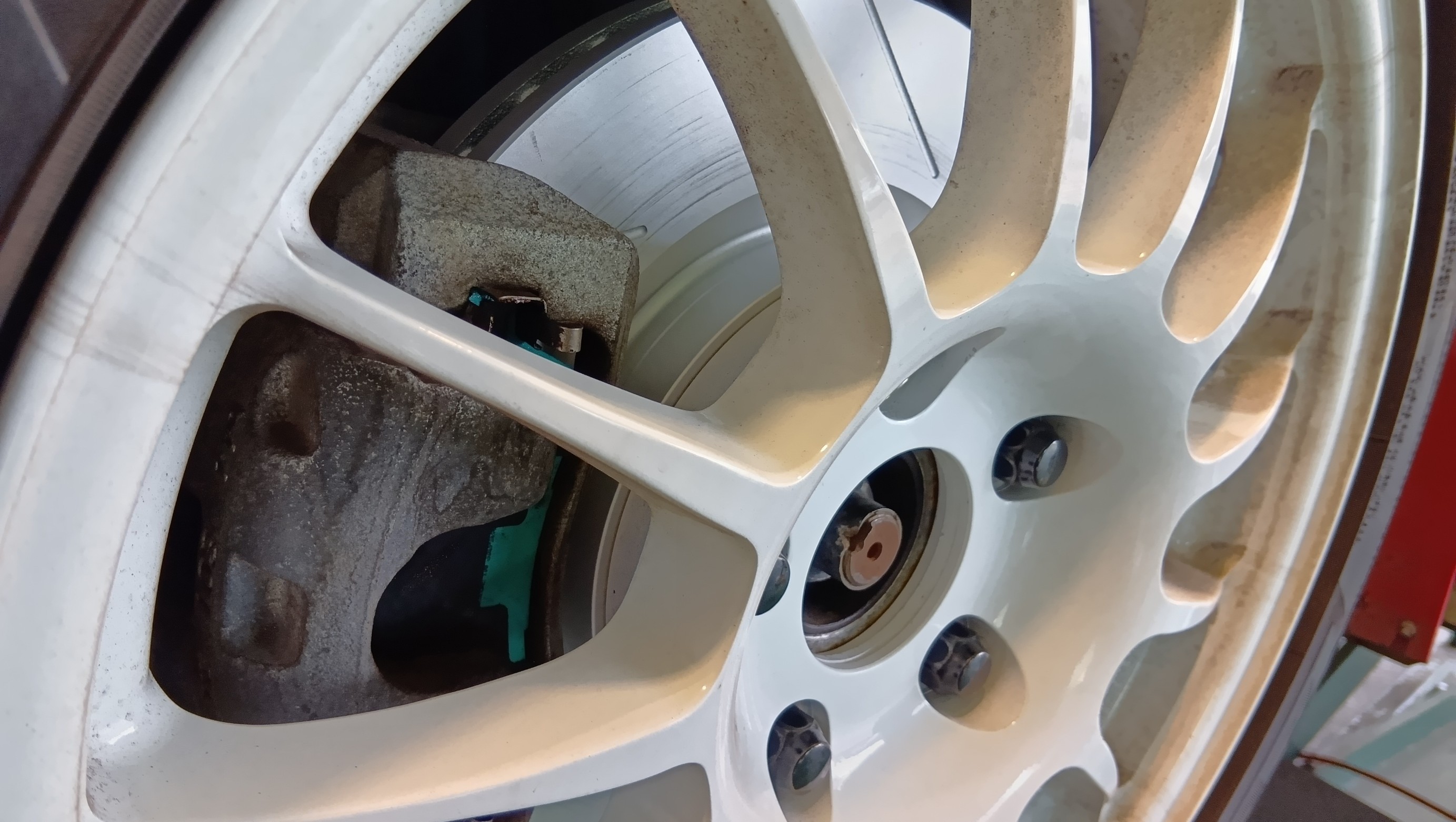 前回のアライメント調整時にローターとパッドが錆により偏摩耗していたため