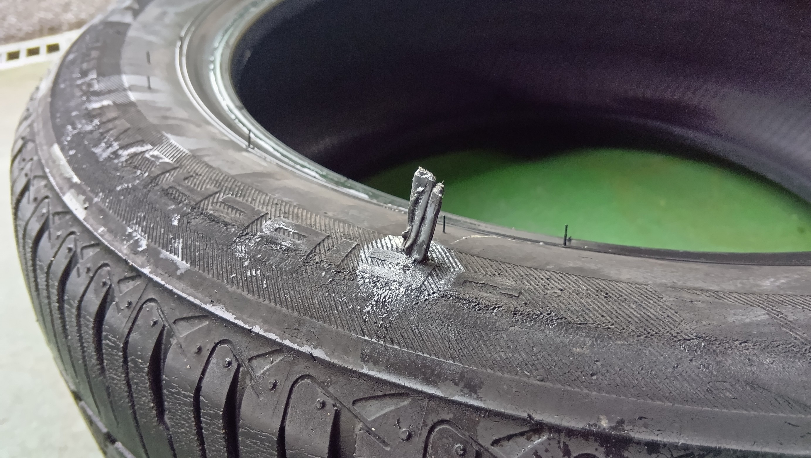 画像でもわかる通り、タイヤのサイドが切れています
