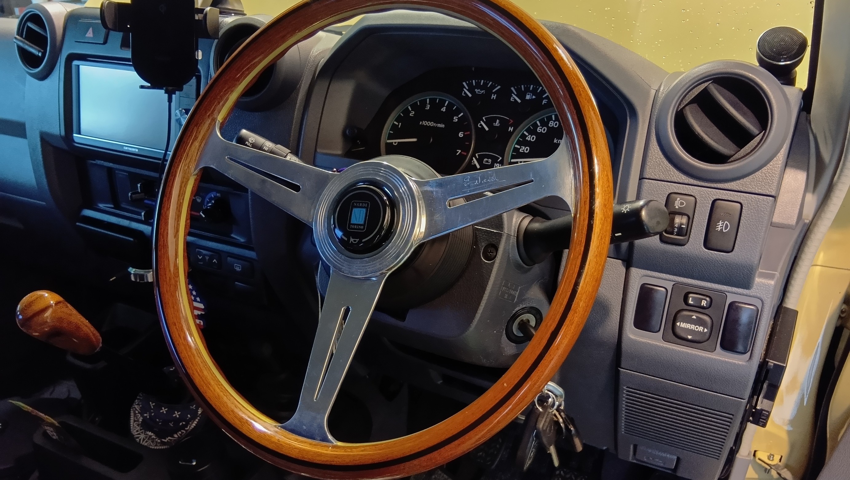 純正のステアリングを外し、ナルディのクラッシックウッドに交換です