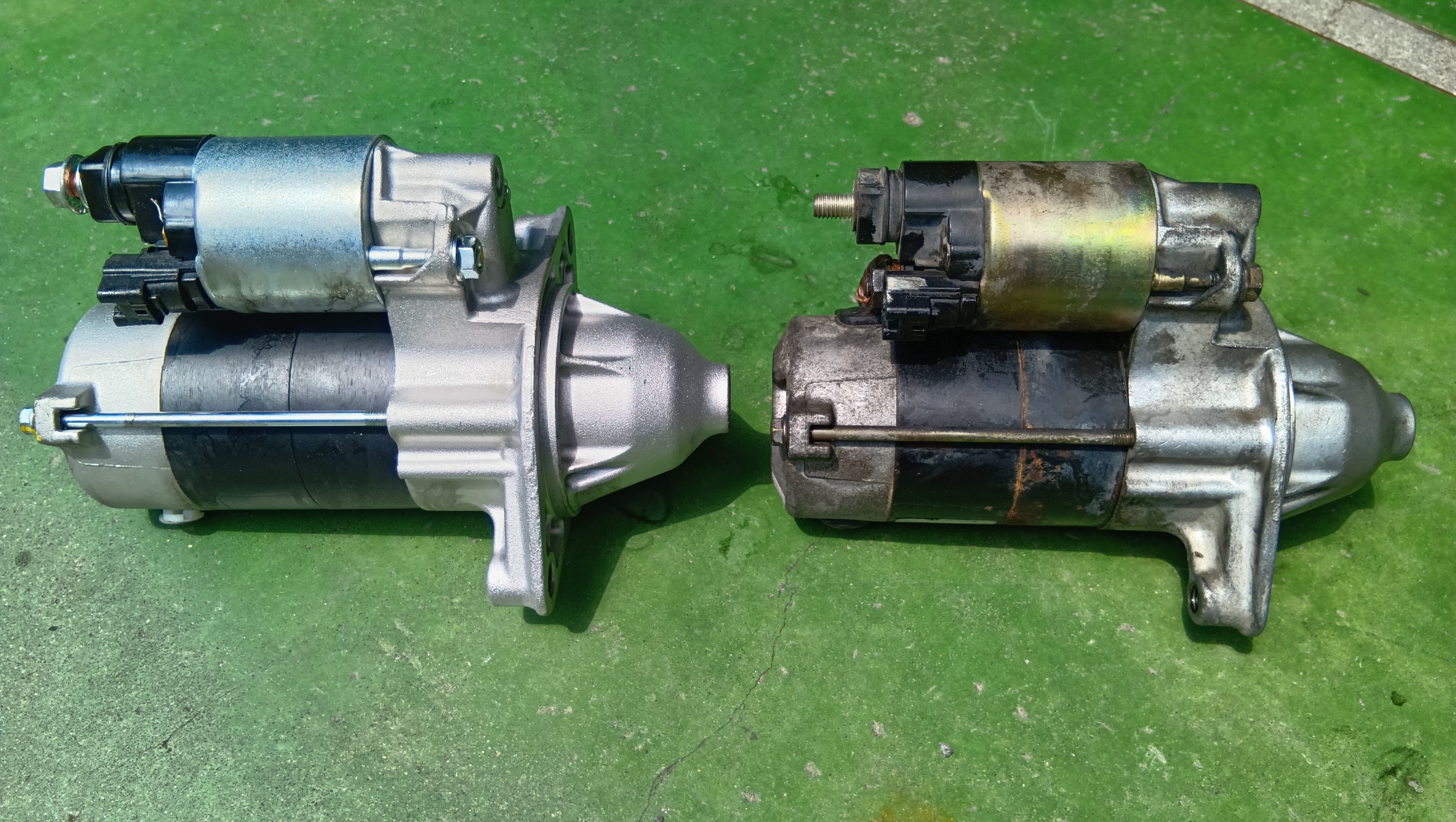 セルモーターの交換作業です、見た目どうり左側が新品です