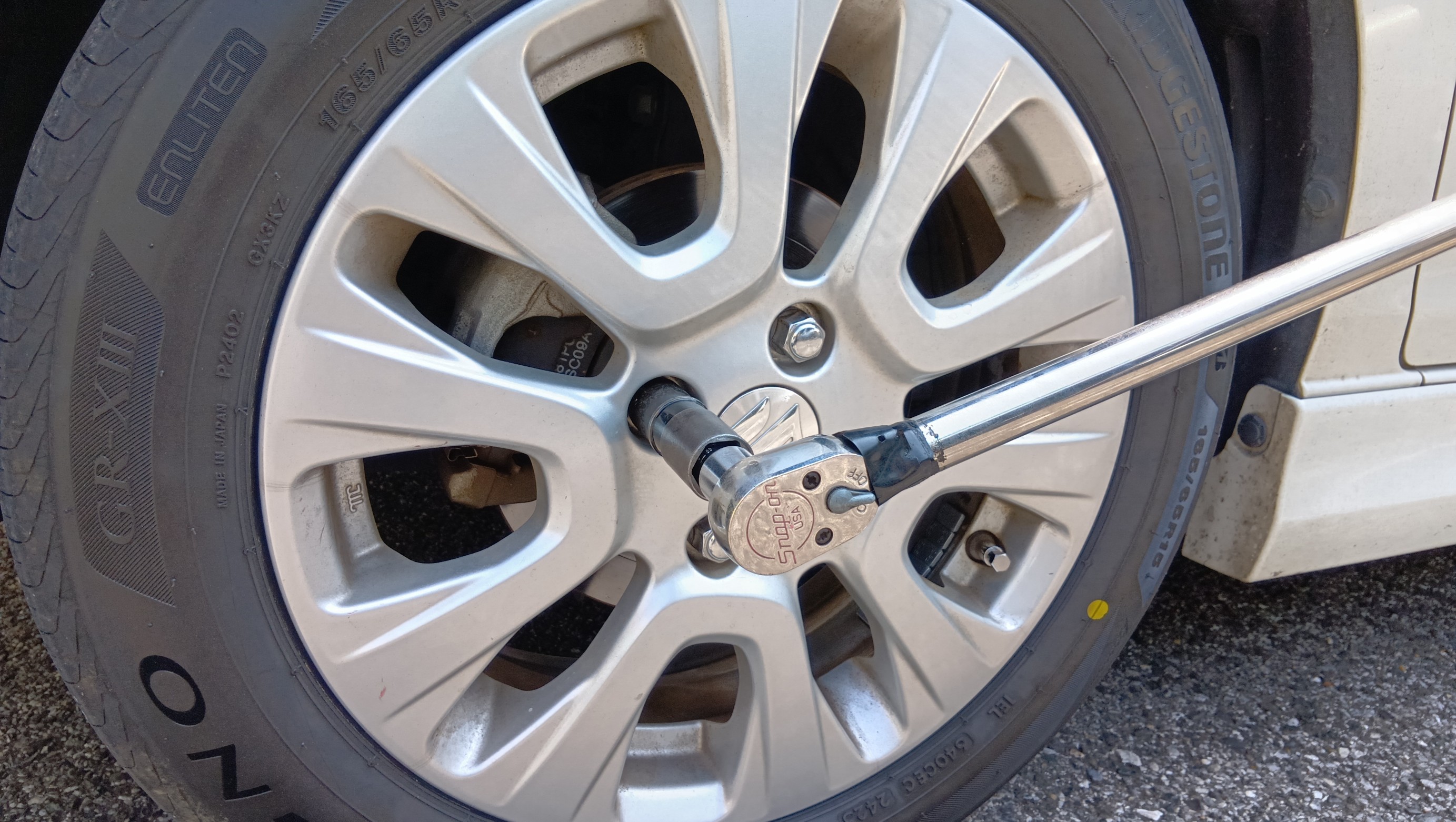 再度ご来店いただき、ナットの増し締めと空気圧のチェックを