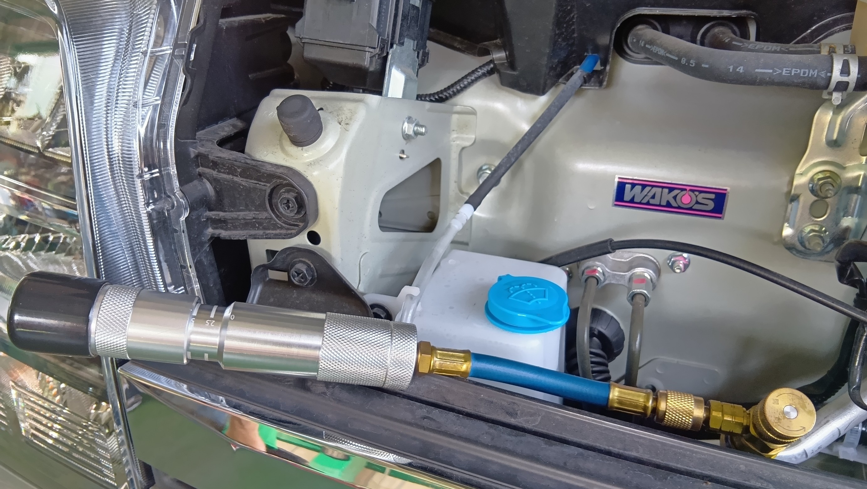 もう少し冷えてほしいとの事で、ワコーズのエアコン添加剤を注入!